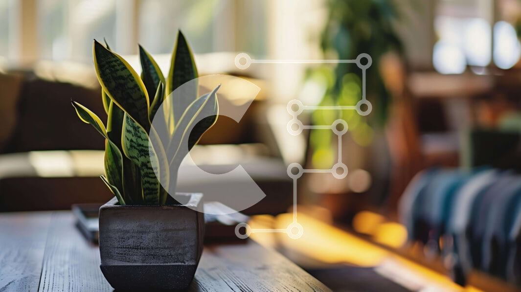 Intra Συλλεκτικό Ξύλινο Παζλ Plywood 4mm - Μικρό φυτό σε γλάστρα σε τραπεζάκι σαλονιού στο ανοιχτό σαλόνι Σε Ξύλινο Κουτί - Διαστάσεις Puzzle: 10x10 cm – 25 κομμάτια