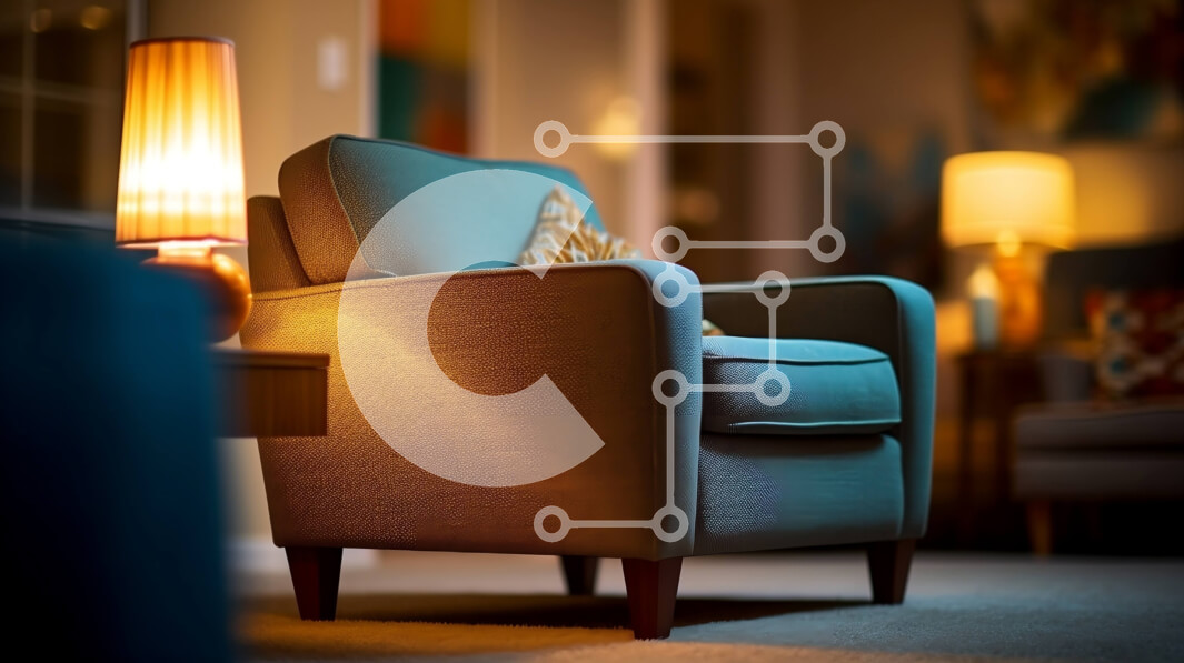 Intra Συλλεκτικό Ξύλινο Παζλ Plywood 4mm - Άνετη μπλε πολυθρόνα με φωτιστικό στη γωνία του δωματίου Σε Ξύλινο Κουτί - Διαστάσεις Puzzle: 10x10 cm – 25 κομμάτια