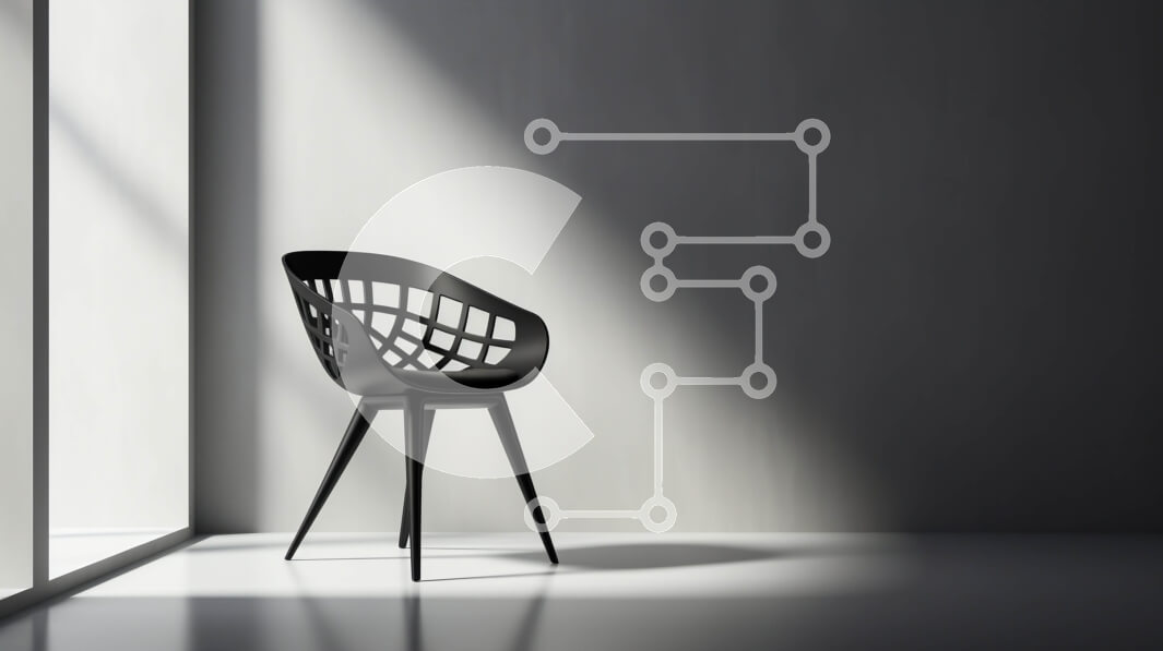 Intra Συλλεκτικό Ξύλινο Παζλ Plywood 4mm - Μοντέρνα μαύρη καρέκλα σε γκρι φόντο Σε Ξύλινο Κουτί - Διαστάσεις Puzzle: 10x10 cm – 25 κομμάτια