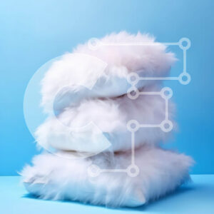 Intra Συλλεκτικό Ξύλινο Παζλ Plywood 4mm - Άνετη στοίβα από λευκά χνουδωτά μαξιλάρια σε μπλε φόντο Σε Ξύλινο Κουτί - Διαστάσεις Puzzle: 10x10 cm – 25 κομμάτια