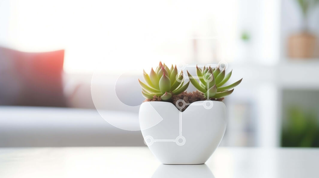Intra Συλλεκτικό Ξύλινο Παζλ Plywood 4mm - Παχύφυτα σε μια λευκή γλάστρα φυτών σε ένα τραπέζι Σε Ξύλινο Κουτί - Διαστάσεις Puzzle: 10x10 cm – 25 κομμάτια