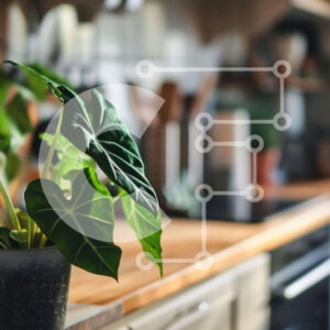 Intra Συλλεκτικό Ξύλινο Παζλ Plywood 4mm - Πράσινη κουζίνα με ζωηρά φυτά σε γλάστρες Σε Ξύλινο Κουτί - Διαστάσεις Puzzle: 10x10 cm – 25 κομμάτια