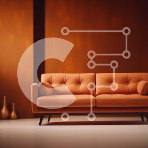 Intra Συλλεκτικό Ξύλινο Παζλ Plywood 4mm - Πορτοκαλί τοίχος με καφέ δερμάτινο καναπέ Σε Ξύλινο Κουτί - Διαστάσεις Puzzle: 10x10 cm – 25 κομμάτια