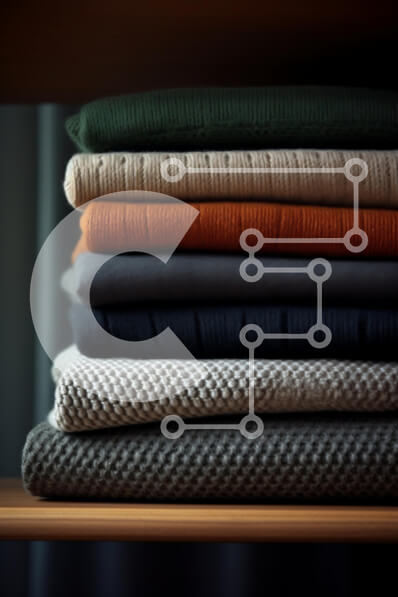 Intra Συλλεκτικό Ξύλινο Παζλ Plywood 4mm - Στοίβα από πολύχρωμα πουλόβερ σε ένα ξύλινο ράφι Σε Ξύλινο Κουτί - Διαστάσεις Puzzle: 10x10 cm – 25 κομμάτια