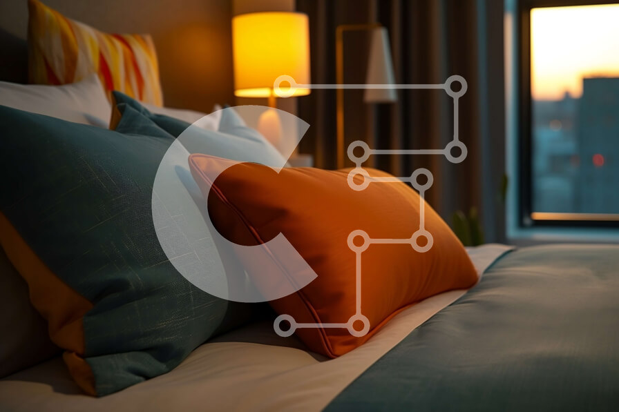 Intra Συλλεκτικό Ξύλινο Παζλ Plywood 4mm - Άνετο και πολύχρωμο υπνοδωμάτιο με πορτοκαλί και μπλε μαξιλάρια Σε Ξύλινο Κουτί - Διαστάσεις Puzzle: 10x10 cm – 25 κομμάτια