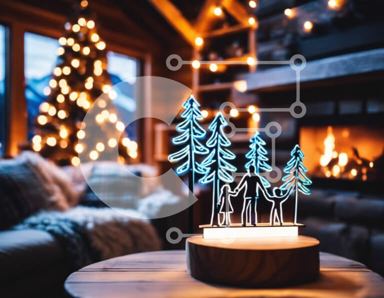 Intra Συλλεκτικό Ξύλινο Παζλ Plywood 4mm - Άνετο σαλόνι διακοσμημένο για τις διακοπές με ένα φωτισμένο γλυπτό δέντρου Σε Ξύλινο Κουτί - Διαστάσεις Puzzle: 10x10 cm – 25 κομμάτια