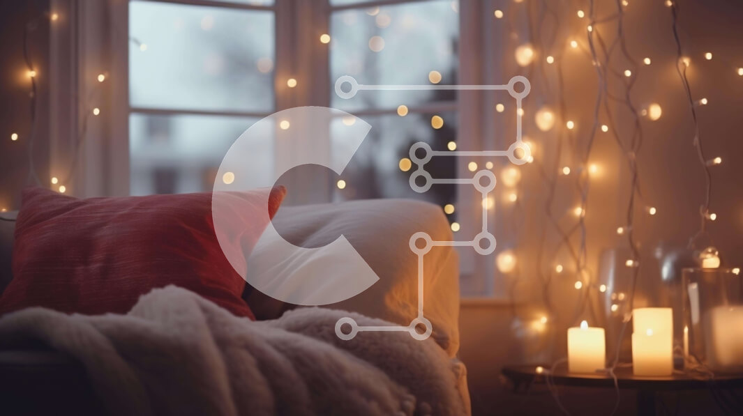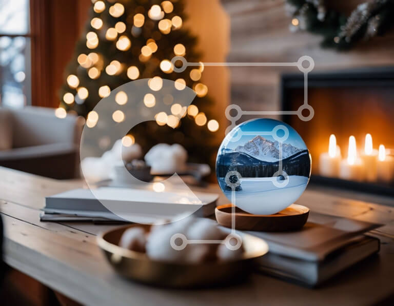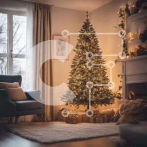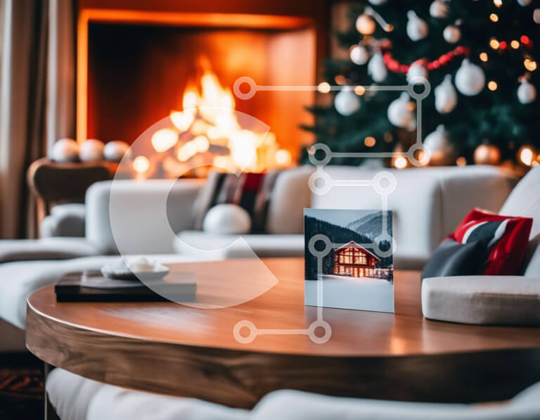 Intra Συλλεκτικό Ξύλινο Παζλ Plywood 4mm - Άνετο σαλόνι διακοσμημένο με χριστουγεννιάτικα φωτάκια Σε Ξύλινο Κουτί - Διαστάσεις Puzzle: 10x10 cm – 25 κομμάτια