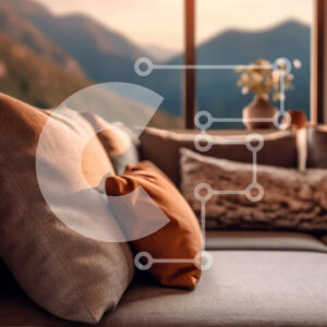 Intra Συλλεκτικό Ξύλινο Παζλ Plywood 4mm - Άνετο σαλόνι με γκρι καναπέ και θέα στο βουνό Σε Ξύλινο Κουτί - Διαστάσεις Puzzle: 10x10 cm – 25 κομμάτια