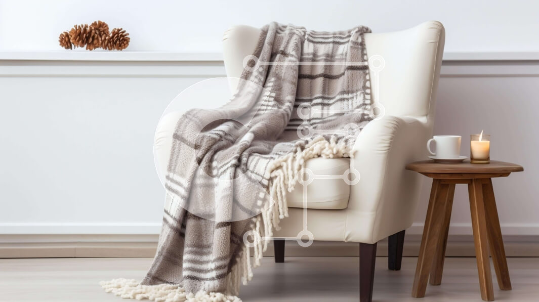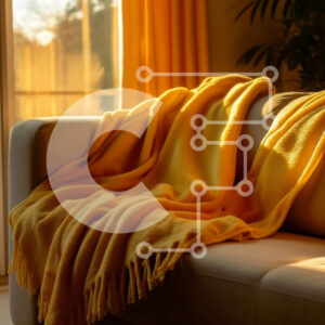 Intra Συλλεκτικό Ξύλινο Παζλ Plywood 4mm - Άνετο σαλόνι με κίτρινη κουβέρτα σε δερμάτινο καναπέ και φυτά Σε Ξύλινο Κουτί - Διαστάσεις Puzzle: 10x10 cm – 25 κομμάτια