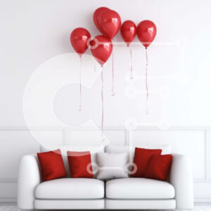 Intra Συλλεκτικό Ξύλινο Παζλ Plywood 4mm - Άνετο σαλόνι με λευκό καναπέ και κόκκινα μπαλόνια Σε Ξύλινο Κουτί - Διαστάσεις Puzzle: 10x10 cm – 25 κομμάτια