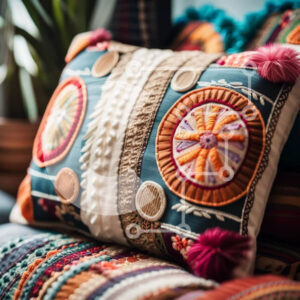 Intra Συλλεκτικό Ξύλινο Παζλ Plywood 4mm - Άνετο σαλόνι με πολύχρωμο κεντημένο μαξιλάρι στον καναπέ Σε Ξύλινο Κουτί - Διαστάσεις Puzzle: 10x10 cm – 25 κομμάτια