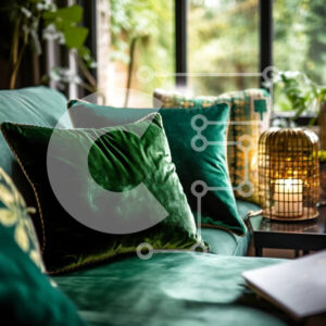 Intra Συλλεκτικό Ξύλινο Παζλ Plywood 4mm - Άνετο σαλόνι με πράσινο καναπέ και διακοσμητικά μαξιλάρια Σε Ξύλινο Κουτί - Διαστάσεις Puzzle: 10x10 cm – 25 κομμάτια