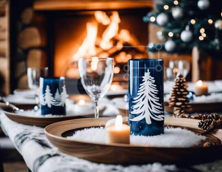Intra Συλλεκτικό Ξύλινο Παζλ Plywood 4mm - Άνετο σετ τραπεζαρίας με μπλε κηροπήγια και τζάκι Σε Ξύλινο Κουτί - Διαστάσεις Puzzle: 10x10 cm – 25 κομμάτια