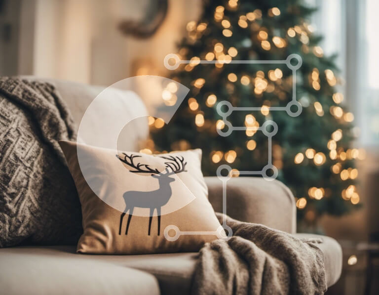 Intra Συλλεκτικό Ξύλινο Παζλ Plywood 4mm - Άνετο σαλόνι με χριστουγεννιάτικη διακόσμηση Σε Ξύλινο Κουτί - Διαστάσεις Puzzle: 10x10 cm – 25 κομμάτια