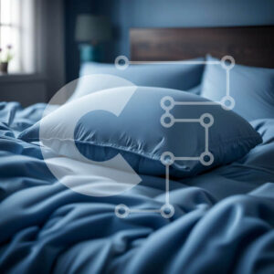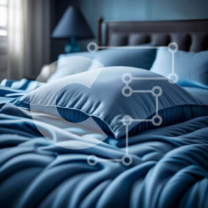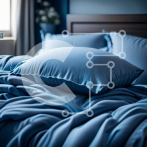 Intra Συλλεκτικό Ξύλινο Παζλ Plywood 4mm - Άνετο υπνοδωμάτιο με μπλε κρεβάτι και κεφαλάρι από σκούρο ξύλο Σε Ξύλινο Κουτί - Διαστάσεις Puzzle: 10x10 cm – 25 κομμάτια