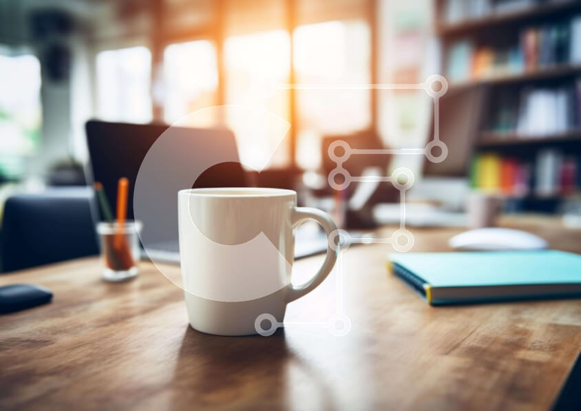Intra Συλλεκτικό Ξύλινο Παζλ Plywood 4mm - Γραφείο με φωτιστικό και φλιτζάνι καφέ σε λευκή επιφάνεια Σε Ξύλινο Κουτί - Διαστάσεις Puzzle: 10x10 cm – 25 κομμάτια