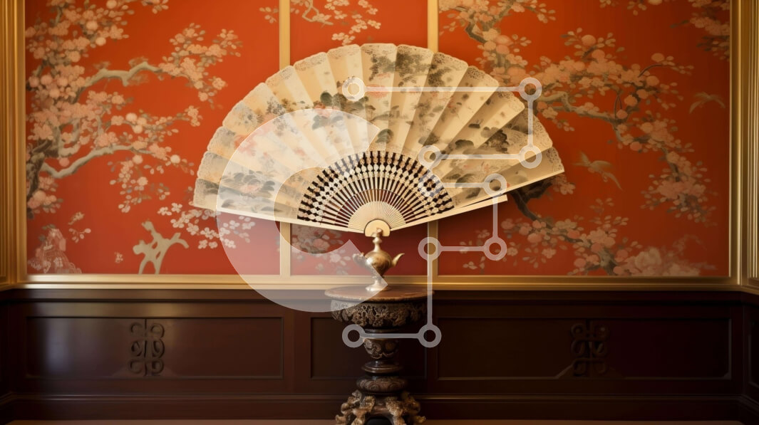 Intra Συλλεκτικό Ξύλινο Παζλ Plywood 4mm - Διακόσμηση δωματίου με ανεμιστήρα και χρυσό βάζο εμπνευσμένη από την Ασία Σε Ξύλινο Κουτί - Διαστάσεις Puzzle: 10x10 cm – 25 κομμάτια