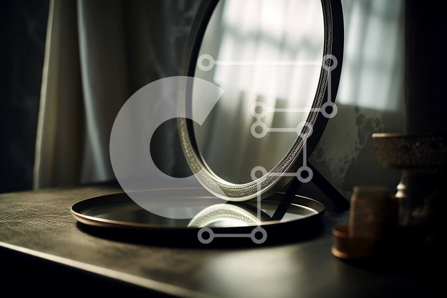 Intra Συλλεκτικό Ξύλινο Παζλ Plywood 4mm - Διακοσμητικός στρογγυλός καθρέφτης σε ξύλινη συρταριέρα σε υπνοδωμάτιο με χαμηλό φωτισμό Σε Ξύλινο Κουτί - Διαστάσεις Puzzle: 10x10 cm – 25 κομμάτια