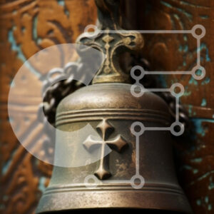 Intra Συλλεκτικό Ξύλινο Παζλ Plywood 4mm - Αντίκα κουδούνι με σταυρό σε υφή ξύλινο φόντο Σε Ξύλινο Κουτί - Διαστάσεις Puzzle: 10x10 cm – 25 κομμάτια