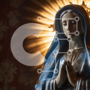 Intra Συλλεκτικό Ξύλινο Παζλ Plywood 4mm - Μονό πορτοκαλί τριαντάφυλλο μπροστά από τη χρυσή κουρτίνα με τη ζωγραφική της Μαρίας και του Ιησού Σε Ξύλινο Κουτί - Διαστάσεις Puzzle: 10x10 cm – 25 κομμάτια