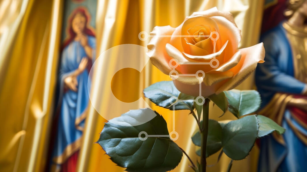 Intra Συλλεκτικό Ξύλινο Παζλ Plywood 4mm - Πορτοκαλί τριαντάφυλλο με θρησκευτικούς πίνακες στο φόντο Σε Ξύλινο Κουτί - Διαστάσεις Puzzle: 10x10 cm – 25 κομμάτια