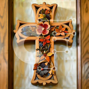 Intra Συλλεκτικό Ξύλινο Παζλ Plywood 4mm - Πολύχρωμος Ξύλινος Σταυρός διακοσμημένος με λουλούδια Σε Ξύλινο Κουτί - Διαστάσεις Puzzle: 10x10 cm – 25 κομμάτια