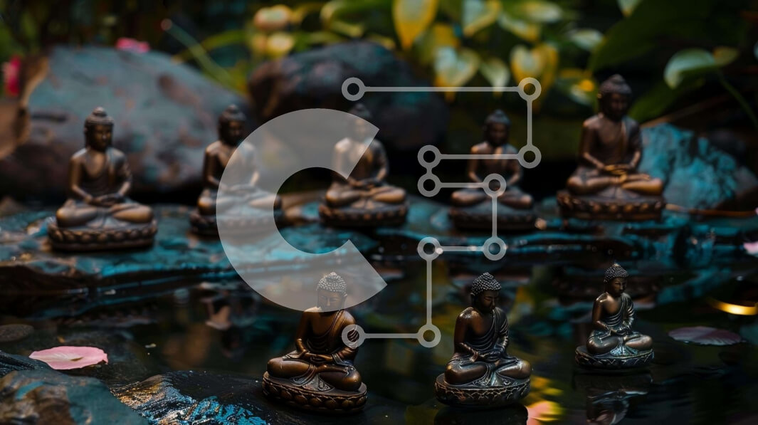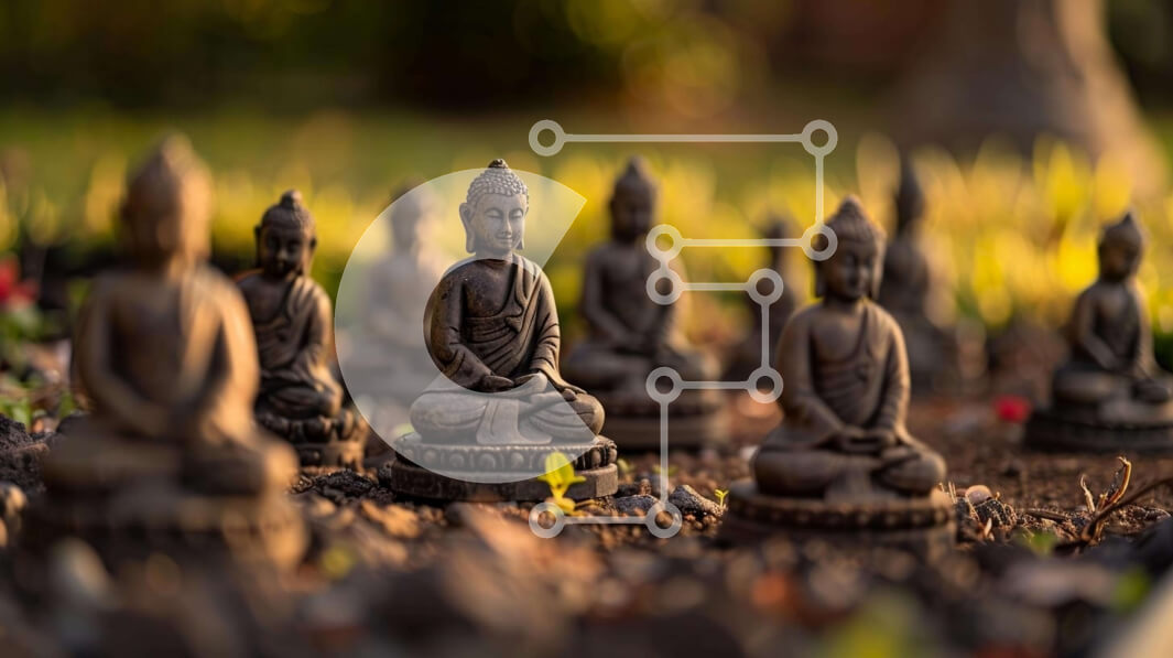 Intra Συλλεκτικό Ξύλινο Παζλ Plywood 4mm - Αγάλματα του Βούδα σε ένα γαλήνιο περιβάλλον Σε Ξύλινο Κουτί - Διαστάσεις Puzzle: 10x10 cm – 25 κομμάτια