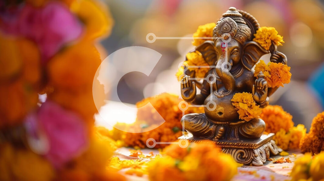 Intra Συλλεκτικό Ξύλινο Παζλ Plywood 4mm - Άγαλμα του Λόρδου Ganesha με πορτοκαλί λουλούδια και διακοσμήσεις Σε Ξύλινο Κουτί - Διαστάσεις Puzzle: 10x10 cm – 25 κομμάτια