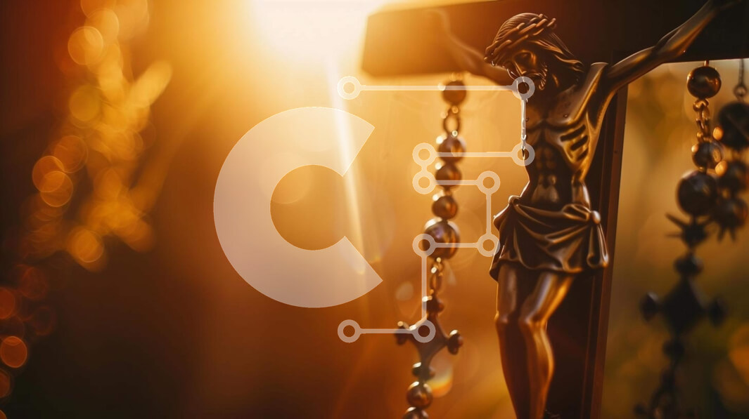 Intra Συλλεκτικό Ξύλινο Παζλ Plywood 4mm - Άγαλμα του Ιησού στο Σταυρό με Ροδάριο Χάντρες Σε Ξύλινο Κουτί - Διαστάσεις Puzzle: 10x10 cm – 25 κομμάτια