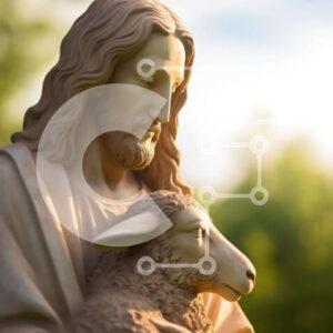 Intra Συλλεκτικό Ξύλινο Παζλ Plywood 4mm - Άγαλμα του Ιησού που κρατά ένα πρόβατο Σε Ξύλινο Κουτί - Διαστάσεις Puzzle: 10x10 cm – 25 κομμάτια