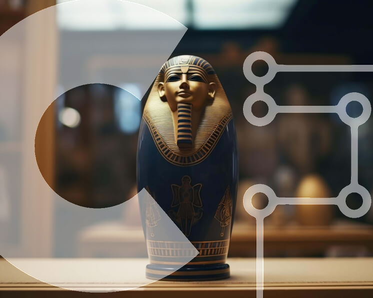 Intra Συλλεκτικό Ξύλινο Παζλ Plywood 4mm - Αρχαίο αιγυπτιακό άγαλμα στην γκαλερί ή το μουσείο τέχνης Σε Ξύλινο Κουτί - Διαστάσεις Puzzle: 10x10 cm – 25 κομμάτια