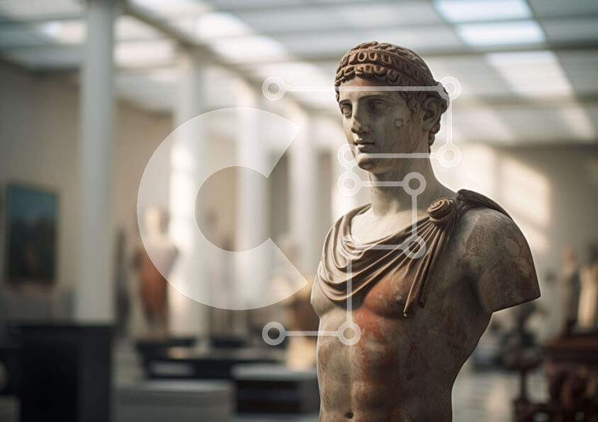 Intra Συλλεκτικό Ξύλινο Παζλ Plywood 4mm - Αρχαίο ρωμαϊκό άγαλμα στην γκαλερί τέχνης Σε Ξύλινο Κουτί - Διαστάσεις Puzzle: 10x10 cm – 25 κομμάτια