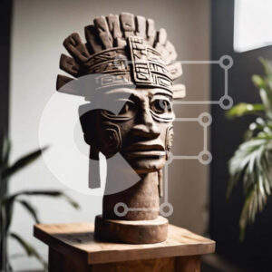 Intra Συλλεκτικό Ξύλινο Παζλ Plywood 4mm - Αρχαίο ξύλινο γλυπτό σε δωμάτιο με φυτά σε γλάστρες Σε Ξύλινο Κουτί - Διαστάσεις Puzzle: 10x10 cm – 25 κομμάτια