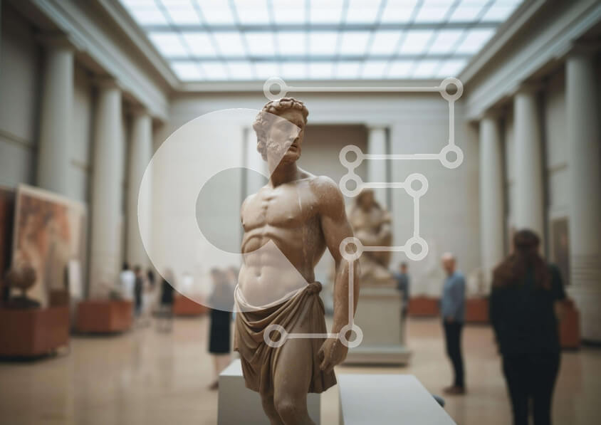 Intra Συλλεκτικό Ξύλινο Παζλ Plywood 4mm - Αρχαίο ελληνικό άγαλμα στο μουσείο με επισκέπτες Σε Ξύλινο Κουτί - Διαστάσεις Puzzle: 10x10 cm – 25 κομμάτια
