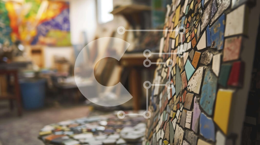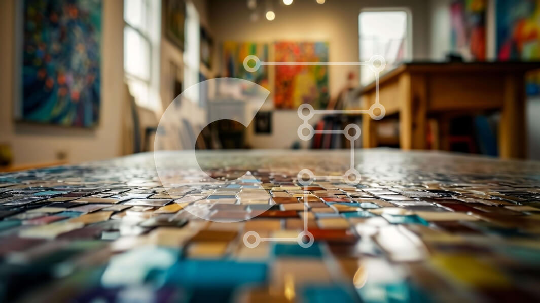 Intra Συλλεκτικό Ξύλινο Παζλ Plywood 4mm - Πολύχρωμο μωσαϊκό με πλακάκια επιτραπέζιο στον χώρο εργασίας του καλλιτέχνη Σε Ξύλινο Κουτί - Διαστάσεις Puzzle: 10x10 cm – 25 κομμάτια