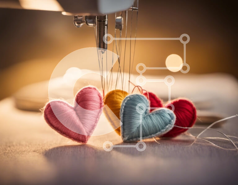 Intra Συλλεκτικό Ξύλινο Παζλ Plywood 4mm - Πολύχρωμο νήμα σε σχήμα καρδιάς ραμμένο από ραπτομηχανή Σε Ξύλινο Κουτί - Διαστάσεις Puzzle: 10x10 cm – 25 κομμάτια
