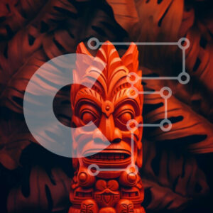 Intra Συλλεκτικό Ξύλινο Παζλ Plywood 4mm - Πορτοκαλί άγαλμα Tiki με πράσινα φύλλα Σε Ξύλινο Κουτί - Διαστάσεις Puzzle: 10x10 cm – 25 κομμάτια