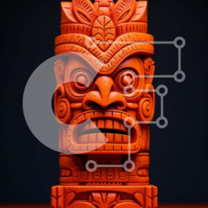 Intra Συλλεκτικό Ξύλινο Παζλ Plywood 4mm - Πορτοκαλί άγαλμα Tiki Σε Ξύλινο Κουτί - Διαστάσεις Puzzle: 10x10 cm – 25 κομμάτια