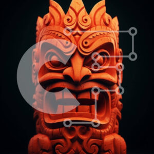 Intra Συλλεκτικό Ξύλινο Παζλ Plywood 4mm - Πορτοκαλί άγαλμα κεφαλιού Tiki Σε Ξύλινο Κουτί - Διαστάσεις Puzzle: 10x10 cm – 25 κομμάτια