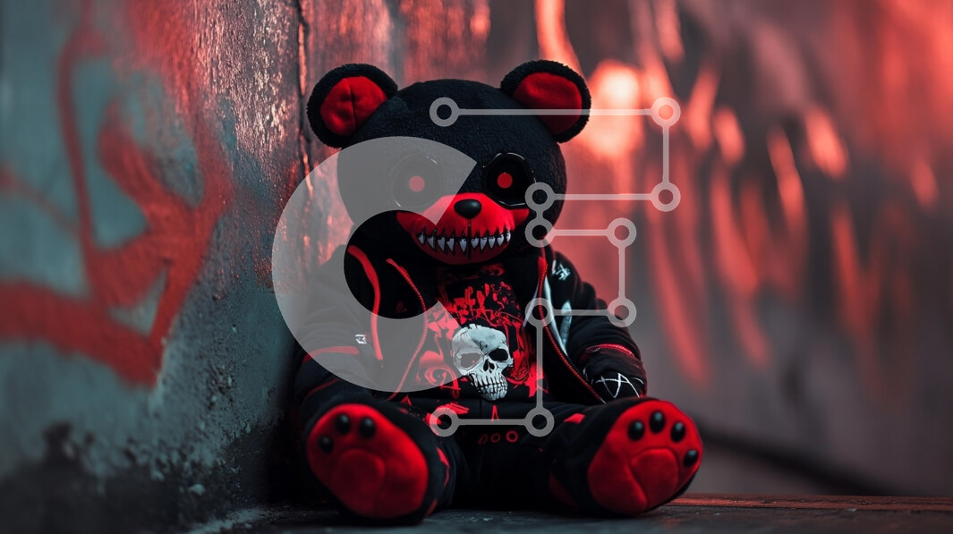Intra Συλλεκτικό Ξύλινο Παζλ Plywood 4mm - Στυλιζέ βελούδινο παιχνίδι Red Bear με Punk Rock Αισθητική Σε Ξύλινο Κουτί - Διαστάσεις Puzzle: 10x10 cm – 25 κομμάτια