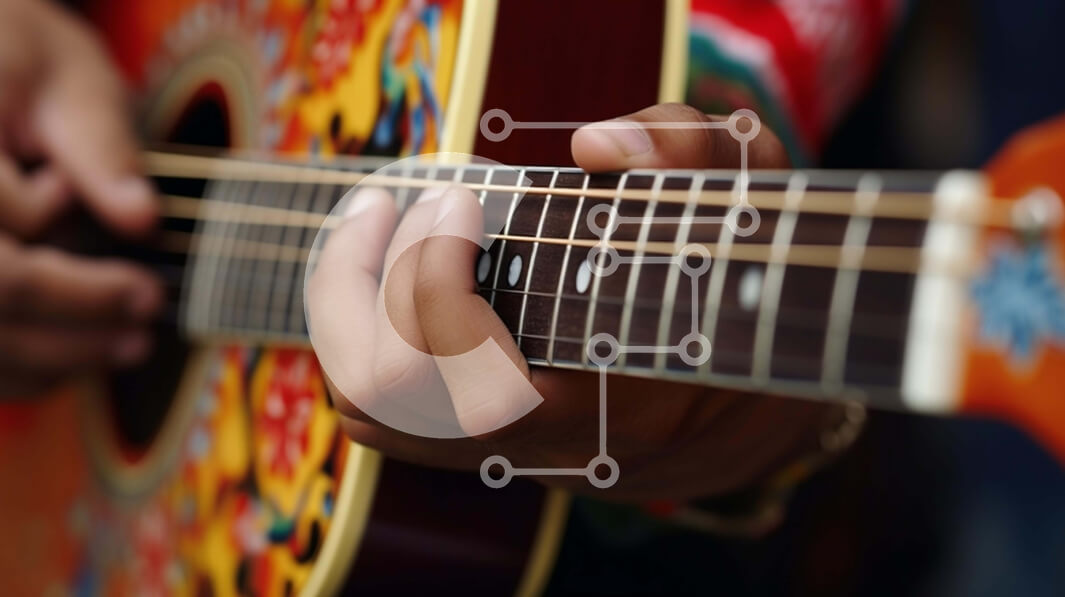 Intra Συλλεκτικό Ξύλινο Παζλ Plywood 4mm - Άτομο που παίζει πολύχρωμη ηλεκτρική κιθάρα Σε Ξύλινο Κουτί - Διαστάσεις Puzzle: 10x10 cm – 25 κομμάτια