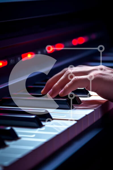 Intra Συλλεκτικό Ξύλινο Παζλ Plywood 4mm - Άτομο που παίζει πιάνο με τα κόκκινα φώτα Σε Ξύλινο Κουτί - Διαστάσεις Puzzle: 10x10 cm – 25 κομμάτια