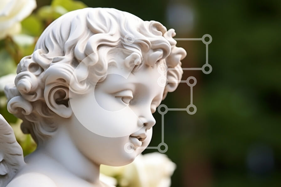 Intra Συλλεκτικό Ξύλινο Παζλ Plywood 4mm - Γαληνό άγαλμα αγγέλου σε έναν κήπο Σε Ξύλινο Κουτί - Διαστάσεις Puzzle: 10x10 cm – 25 κομμάτια