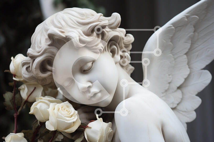 Intra Συλλεκτικό Ξύλινο Παζλ Plywood 4mm - Γλυπτό ενός αγγέλου με τριαντάφυλλα Σε Ξύλινο Κουτί - Διαστάσεις Puzzle: 10x10 cm – 25 κομμάτια