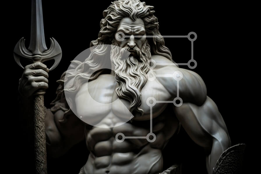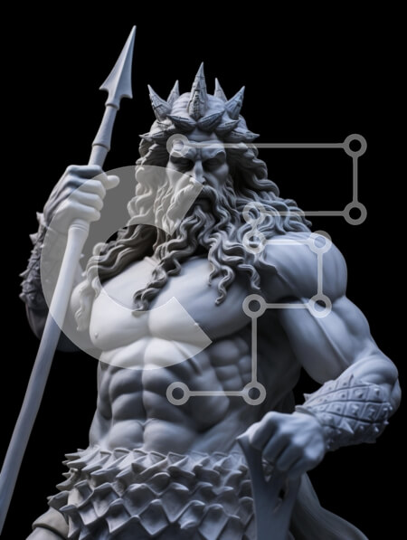 Intra Συλλεκτικό Ξύλινο Παζλ Plywood 4mm - Γλυπτό ενός μυώδη θεού που κρατά μια τρίαινα Σε Ξύλινο Κουτί - Διαστάσεις Puzzle: 10x10 cm – 25 κομμάτια