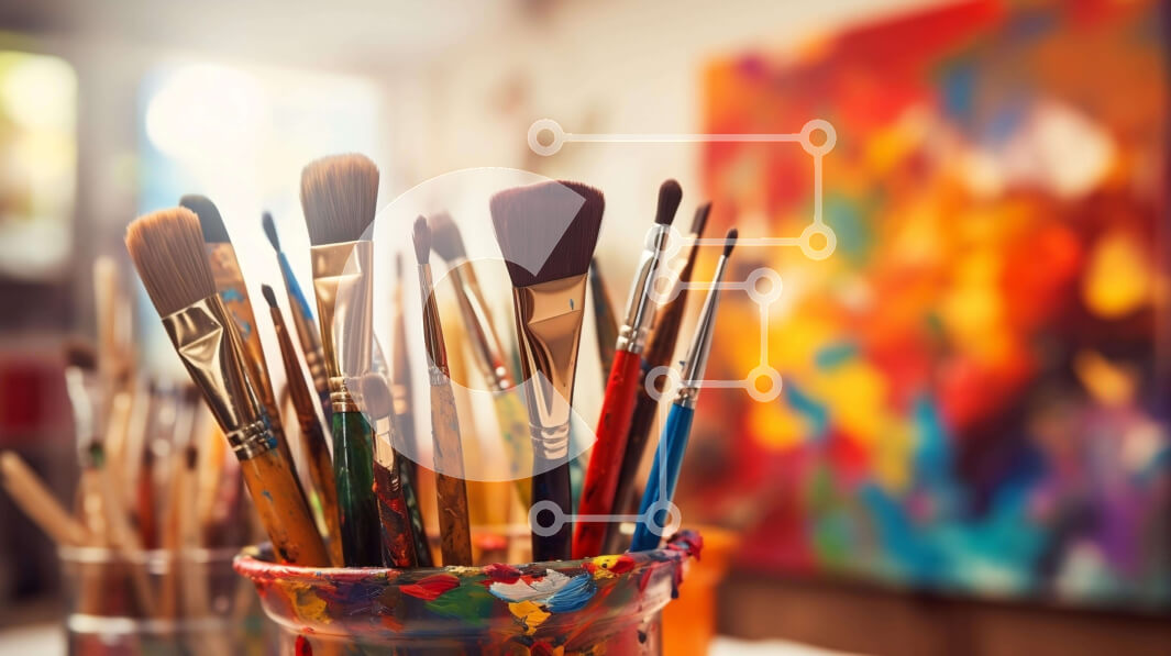 Intra Συλλεκτικό Ξύλινο Παζλ Plywood 4mm - Διάφορα πινέλα και υλικά ζωγραφικής Σε Ξύλινο Κουτί - Διαστάσεις Puzzle: 10x10 cm – 25 κομμάτια