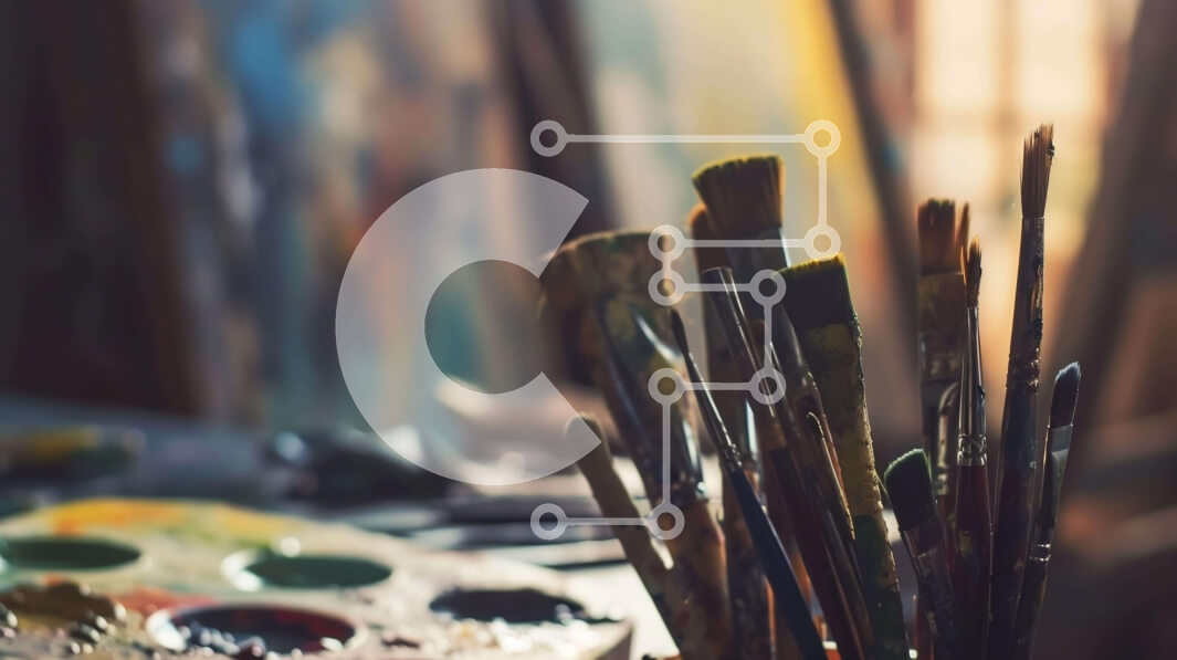 Intra Συλλεκτικό Ξύλινο Παζλ Plywood 4mm - Είδη τέχνης και πινέλα στο χώρο εργασίας του καλλιτέχνη Σε Ξύλινο Κουτί - Διαστάσεις Puzzle: 10x10 cm – 25 κομμάτια