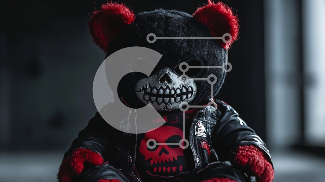 Intra Συλλεκτικό Ξύλινο Παζλ Plywood 4mm - Δυναμικό βελούδινο αρκουδάκι με κρανίο πρόσωπο Σε Ξύλινο Κουτί - Διαστάσεις Puzzle: 10x10 cm – 25 κομμάτια