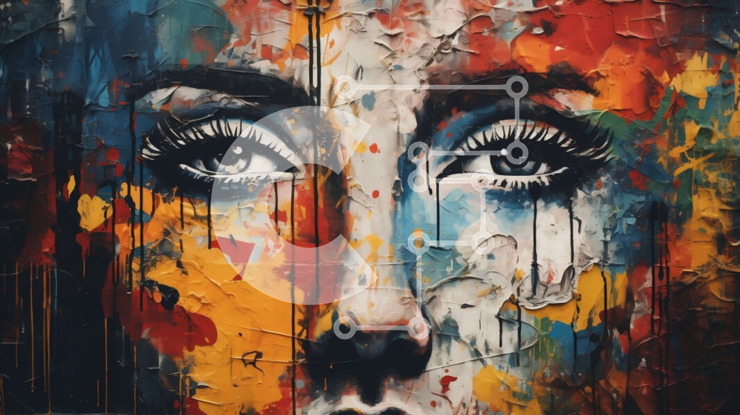 Intra Συλλεκτικό Ξύλινο Παζλ Plywood 4mm - Θλίψη ή μελαγχολία: Το πρόσωπο μιας γυναίκας ζωγραφισμένο σε έναν κατεστραμμένο τοίχο Σε Ξύλινο Κουτί - Διαστάσεις Puzzle: 10x10 cm – 25 κομμάτια