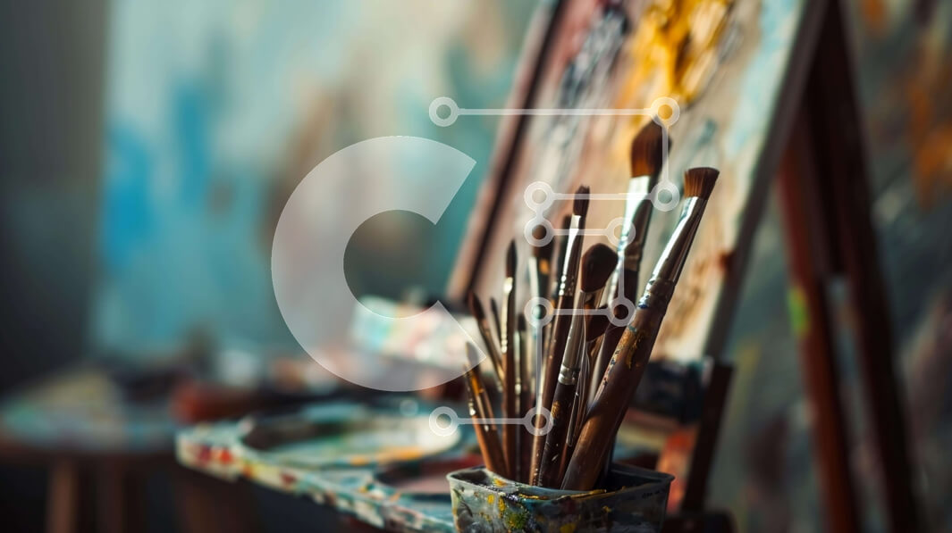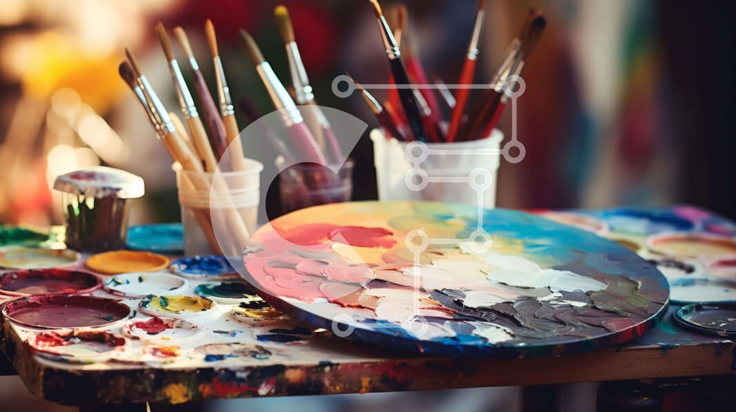 Intra Συλλεκτικό Ξύλινο Παζλ Plywood 4mm - Καλλιτέχνης παλέτα και πινέλα στο καβαλέτο στο Art Studio Σε Ξύλινο Κουτί - Διαστάσεις Puzzle: 10x10 cm – 25 κομμάτια